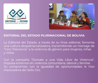 Es la máxima distinción que otorga el Estado Plurinacional de Bolivia a las empresas públicas y privadas como reconocimiento por su contribución a la prevención de la violencia contra las mujeres y a la construcción de una cultura despatriarcalizadora