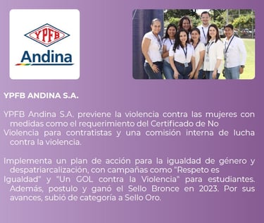 Promovemos el sello de empresas comprometidas con la prevención de la violencia hacia las mujeres en Bolivia, fomentando una cultura despatriarcalizadora.